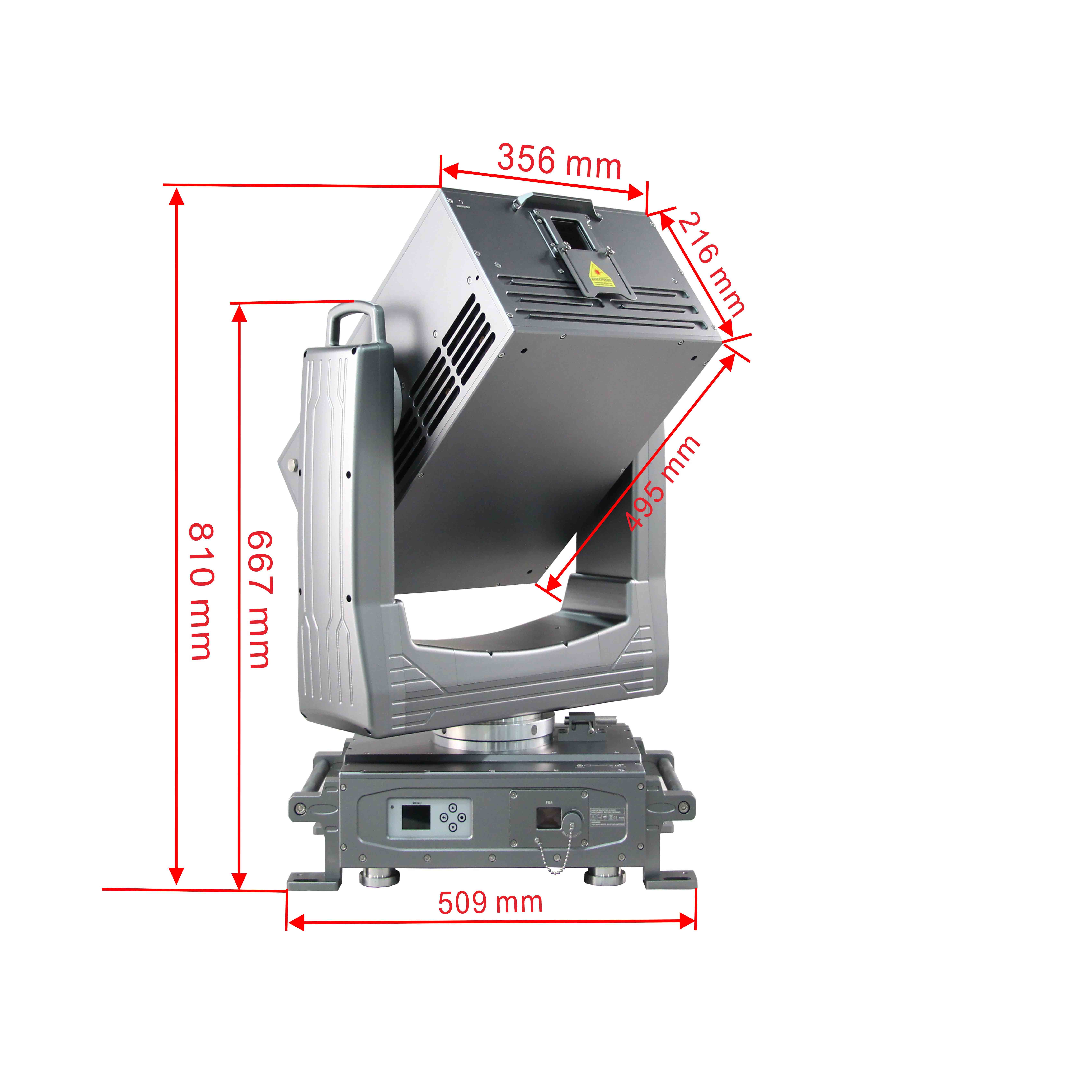 2.X轴540度,Y轴270度旋转,激光效果360度全方位扫描,为户外灯光秀,实景秀增加亮点。